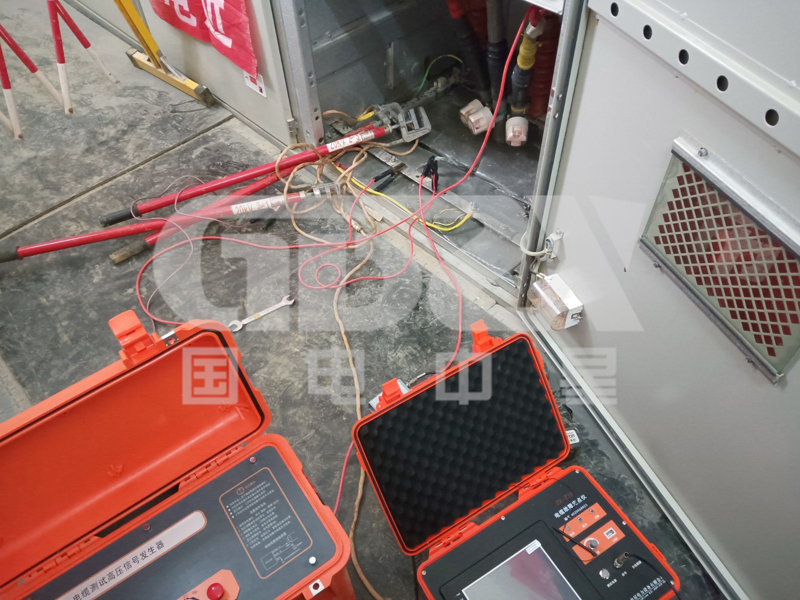 國電中星應(yīng)武漢江夏區(qū)客戶要求,及時到達(dá)變壓器故障發(fā)生地——栗廟路變電站。到達(dá)現(xiàn)場后,國電中星技術(shù)人員立馬有條不紊的開展工作。此次用到的設(shè)備是國電中星生產(chǎn)的ZXVLF系列超低頻高壓發(fā)生器。